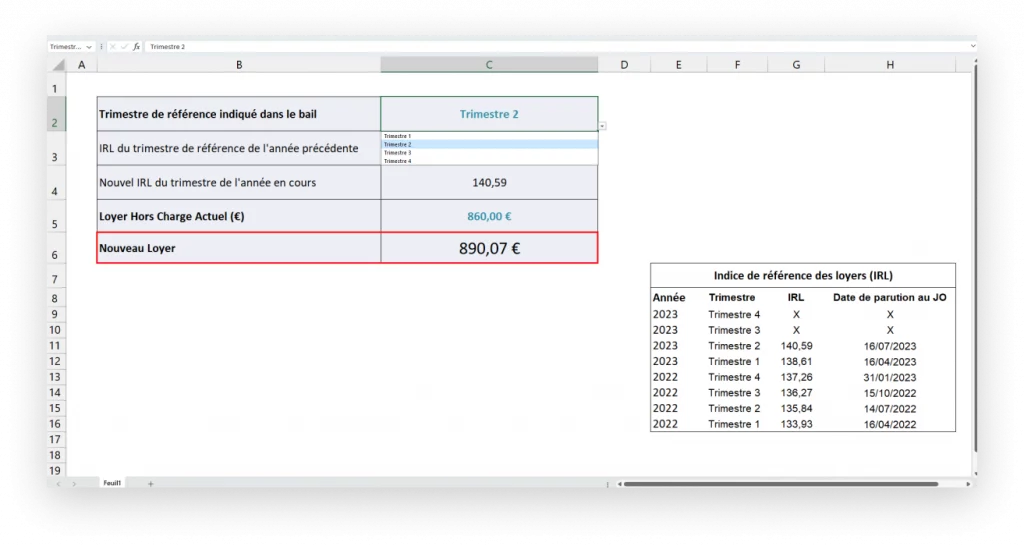 Simulation fiable et précise de vos nouveaux loyers en fonction de l’Indice de Référence des Loyers (IRL) à jour.